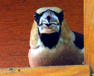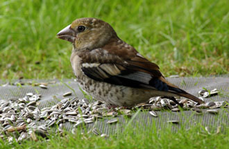 Autre surprise, au même endroit un grosbec (Photo B) en plumage juvénile